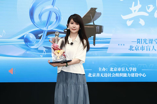 北京市盲人学校副校长陈瑜对各方的支持表示感谢,也阐述了此次活动对视障学生们的深远意义。随后,华语乐坛歌手孟庭苇在《羞答答的玫瑰静悄悄地开》的音乐声中登场,让现场瞬间充满期待。