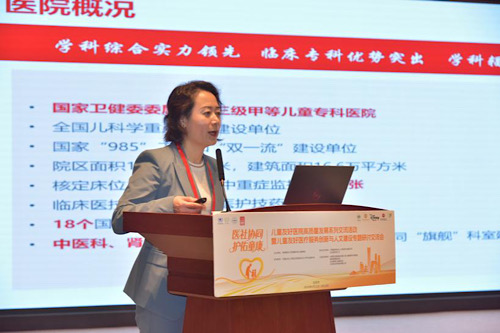 为保障儿童权益福祉,提升儿童医学人文关怀,为儿童友好医院高质量发展建设提供有益探索,本次大会特邀国家卫生健康委员会妇幼司儿童卫生处副处长马力、复旦大学附属儿科医院党委书记李倩,中国社会工作联合会医务社会工作专业委员会总干事关冬生和北京儿童医院党委书记张国君,共同就“儿童友好医院建设政策支持与创新实践”主题进行主旨报告分享。他们分别从“《关于开展儿童友好医院建设的意见》解读”“儿童友好医院的高质量发展与建设”“中国医务社工调研报告——联合国儿基会项目总报告发布”“北京儿童友好医院建设设想与人文建设经验分享”四个板块展开论述,指出儿童友好医院建设是一项长期而艰巨的任务,是全面提升医疗人文服务关怀、推动医疗卫生事业高质量发展的重要抓手。这需要各方携手共进,营造全社会关心支持儿童健康的良好氛围。希望以此次大会为契机,社会各方能够积极探索创新,扎实推进各项工作,为孩子们打造更加优质、温暖、安全的就医环境。