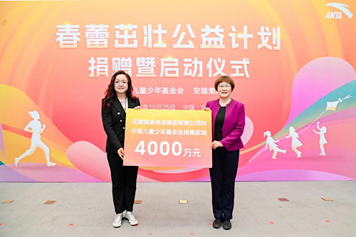 10月25日,安踏体育用品集团有限公司(以下简称安踏集团)向中国儿童少年基金会(以下简称中国儿基会)捐赠款物4000万元启动实施“春蕾茁壮公益计划”。