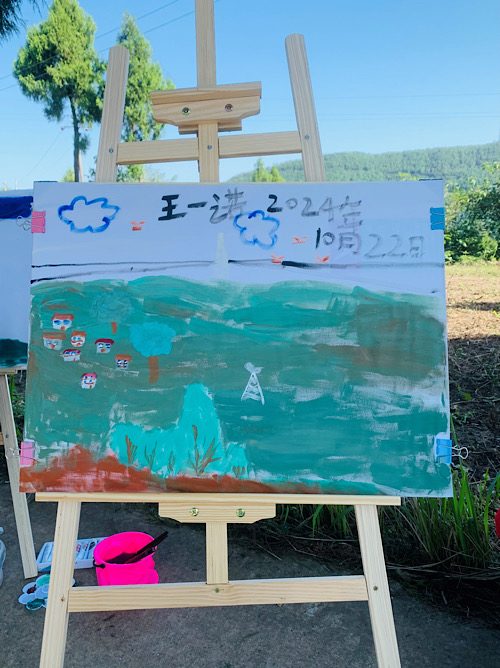 户外场景化的教学拓展了儿童美育空间。孩子们在主教们的指导下认真地作画。他们有的画出了远处的群山,有的画出了丰收的田地,还有的画出了绿意盎然的树木和古朴的农舍……每一幅画都展现了孩子们对自然与家乡的观察与情感。大家在表达自然美和艺术美的同时,也提升了保护自然、热爱家乡的自觉意识。