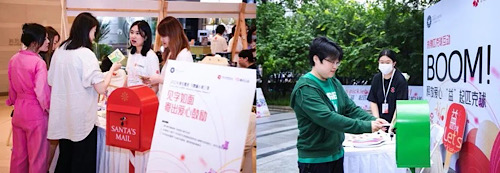 在公益嘉年华活动现场,众多爱心商家也积极参与到公益倡导活动中来,在自己的摊位宣传并介绍“飞吻童心”公益行动,号召更多人关注先心病患儿群体。很多商家还参与北京嘉里中心发起的线上一起捐,向“飞吻童心”公益行动捐赠善款,支持困难家庭患儿的手术费用,帮孩子们战胜疾病、重获健康。