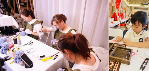 莉娜熊手作老师还在现场制作小熊玩偶,一针一线中都饱含对孩子们的爱心与守护。来到嘉年华活动现场的小朋友更是充当志愿者角色,亲手编制起手串,为身在医院的同龄人送上一份温暖的小礼物。
