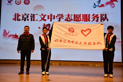 会上,“北京汇文中学志愿服务队”正式成立,东城区委宣传部副部长吕帅帅为志愿服务队授旗。东城区民政局、北京汇文中学签署了“慈善教育文化合作协议”,积极搭建学生社会实践平台,加大慈善文化宣传、“一老一小”志愿服务成长互助、公益慈善活动等多样性合作。