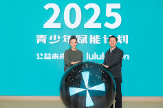 中国乡村发展基金会副秘书长王鹏(右)与lululemon中国品牌营销高级副总裁谢淑玲(左)启动2025青少年赋能计划