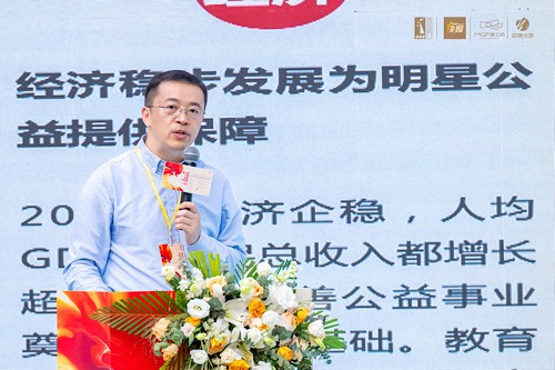 中国乡村发展基金会王鹏副秘书长参会并致辞,王鹏副秘书长在致辞中提到:中国演艺明星作为文艺工作者的代表,不忘初心、勇担责任,长期参与支持公益慈善活动,是新时代风气的先觉者、先行者和先倡者,已成为中国公益事业的一个重要组成部分,蕴含着激发催人奋进的影响力,播散着引领世道人心的正能量。明星公益慈善行为对于社会主义精神文明建设,弘扬社会主义价值观,助力乡村振兴都具有重大现实意义和深远历史意义。