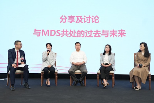 在“与MDS共处的过去与未来”的圆桌讨论环节,由刘正琛主持,张苏江医生、韩晓凤医生、许晓倩医生、张雪皎医生就MDS患者的治疗难点、治疗目标、生活状态和心理挑战等进行了深入讨论,并探讨了创新治疗在未来的发展,希望能够让患者有更多治疗选择,并改善生活质量。在答疑环节,专家们对患者提出的输血难、复查、治疗方式等问题进行了专业解答。