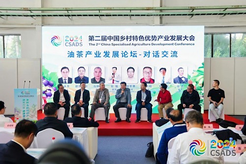 10月11日下午,第二届中国乡村特色优势产业发展大会油茶产业发展论坛在京举行。论坛由中国乡村发展志愿服务促进会、安徽省乡村振兴协会、中国经济林协会、国家油茶工程技术研究中心联合主办。农业农村部食物与营养发展研究所、中国经济林协会木本油料分会、中国林业与环境促进会油茶产业分会、中国林业产业联合会油茶分会、湖南省林业局、江西省林业局、广西壮族自治区林业局等单位协办。本次论坛的主题是推动油茶产业高质量发展。中国乡村发展志愿服务促进会副会长王家华、安徽省乡村振兴协会会长刘永春、国家林草局产业规划院生态产业一处处长张忠涛出席论坛开幕式并致辞。