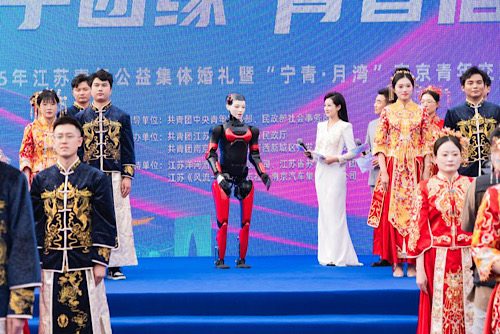 在这场传统中式婚礼上,新人们行却扇礼、合卺礼、结发礼,并向广大青年发起倡议,倡导“勤俭节约、平等互敬、担当共进、家庭和睦”的文明婚恋新风尚。具身机器人“夏澜”为新人送上美好祝福,展现了硬核科技与传统文化相碰撞的浪漫图景。