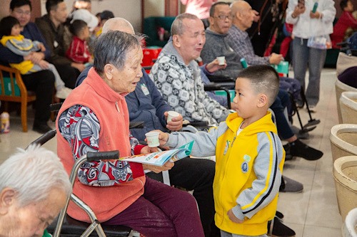 10月9日,80名儿童及老人齐聚一堂,共同参与丰富多彩的活动。孩子们津津有味的听着重阳节的由来,对孝文化有了更深刻的认识。随后的击鼓传花、才艺展示更是将现场气氛推向高潮。为表达对老人的敬爱之情,孩子们有模有样的为老人端上热茶,又送上了自己亲手制作的手工礼物,将孝心赋予在力所能及的小事之中。京都念慈菴的志愿者们也亲切地为老人们送上了满载祝愿的礼包。下午,儿童家庭来到了当地的养老院,孩子们围成一圈听老人们讲过去的故事,童真的发问为老人们带来了声声欢笑。