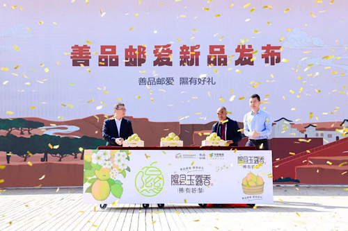 活动现场,善品公社联合中国邮政集团有限公司临汾市分公司,创新帮扶机制,共同发布“善品邮爱”隰县玉露香梨消费帮扶计划,整合资源,形成合力,共同助力隰县玉露香梨拓展市场销售渠道,提升品牌影响力,助力乡村振兴。