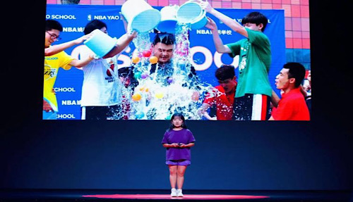 王奕鸥参与公益演讲,向大家介绍冰桶挑战(视频截图)