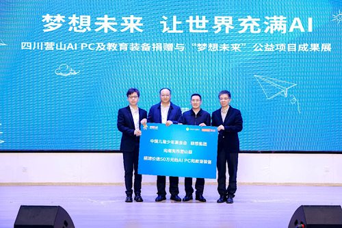 11月7日,以“梦想未来 让世界充满AI”为主题的AI PC及教育装备捐赠与“梦想未来”公益项目成果展在四川南充市营山县云凤实验小学举办。仪式现场,联想集团携手中国儿童少年基金会共同向营山县捐赠了价值50万元的最新联想AI PC产品和智慧教育装备。