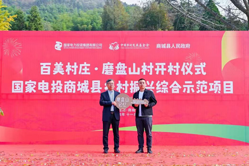 11月2日,百美村庄·磨盘山村开村仪式在河南省信阳市商城县长竹园乡磨盘山村举行。本次活动由国家电力投资集团有限公司、中国乡村发展基金会、商城县人民政府共同主办。
