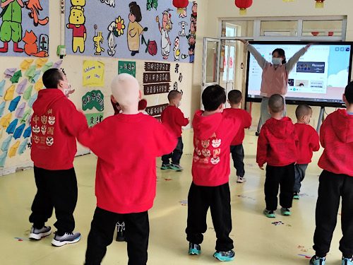 记者注意到,在教室外有一排摆的整整齐齐的毛笔“福”字作品,志愿者李尚遥告诉记者,这是他们在书法课上陪孩子一起完成的。“有一个小朋友是聋哑儿童,我就尝试用浅学的手语比划,教他照着范字去练习,最终也写出了一个漂亮的‘福’字。”李尚遥笑着说。有着12年舞龄并且在省舞蹈比赛中获得过一等奖的王恩典同学和另外两位有舞蹈特长的同学结成小组,为福利院的小朋友开展了特色舞蹈课程,在欢快的节奏和灵动的步伐中,让孩子们尽情释放活力。