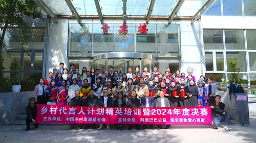 2022年,中国乡村发展基金会联合阿里巴巴公益、淘宝美妆共同发起了“乡村代言人计划”,通过技能培训、主播实训、名师加持三级培养体系,提升乡村旅游讲解员与农特产品直播员讲故事的能力、感染力,通过新媒体技术传播家乡文化,让“游客走进来,农特产品走出去”助力乡村可持续发展。此次来京参赛的46名选手都是参加过技能培训和主播实训两个阶段后层层选拔出来的精英。
