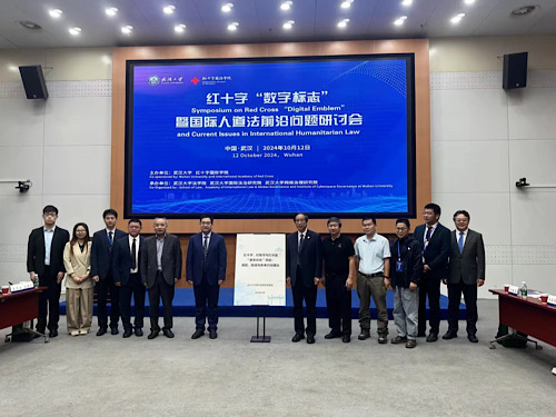 2024年10月12日,武汉大学与红十字国际学院合作主办,武汉大学法学院、国际法治研究院、网络治理研究院联合承办的“红十字‘数字标志’暨国际人道法前沿问题研讨会”在武汉大学校园举行。来自红十字国际委员会、红十字会与红新月会国际联合会、外交部、中国红十字会总会、中国红十字基金会、中国互联网络信息中心等部门相关负责人和专家,以及红十字国际学院、武汉大学的领导及中国政法大学、华中科技大学、厦门大学、中南财经政法大学、首都经济贸易大学、湖北工业大学等学界专家和红十字工作者、志愿者等四十多人参加了本次研讨会。