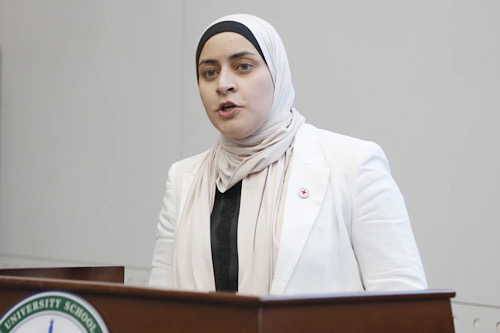 当日下午,研讨会进入“国际人道法前沿问题”研讨环节,武汉大学国际法治研究院教授苏金远主持了第一单元研讨会。Marwa Shabbar以《国际人道法在当代武装冲突中的挑战》为题,深入剖析了当前国际人道法在应对武装冲突时所面临的挑战。中国政法大学国际法学院副院长朱利江教授就《国际法院“以色列巴勒斯坦占领政策”案中的国际人道法》进行了发言,深入剖析了国际人道法在该案件中的适用情况。中南财经政法大学法学院讲师、博士后应瑶慧以《区分原则在网络空间的适用》为题进行了发言,深入探讨了区分原则在网络攻击和网络战争中的适用。