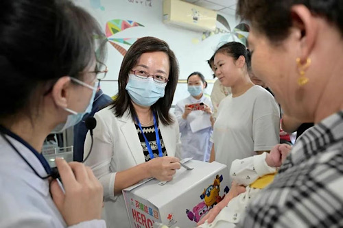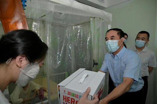 9月28日上午,中国红十字基金会名誉会长王海京、《公益时报》社社长赵冠军、中共湖北省委社会工作部二级巡视员朱红、湖北省卫生健康委员会二级巡视员江中三、湖北省红十字会秘书长陈波、武汉儿童医院党委副书记、纪委书记邓志宏等一行探望了在武汉儿童医院住院治疗的白血病患儿和康复中心的患儿,并为他们送上了英雄能量包,带去节日问候。