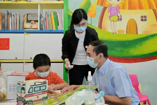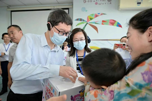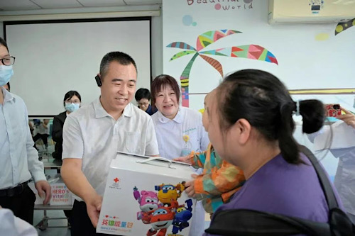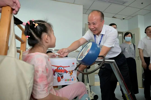 中国红十字基金会名誉会长王海京为康复中心的患儿送上英雄能量包